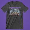 Black short sleeve t-shirt with pixel art logo.